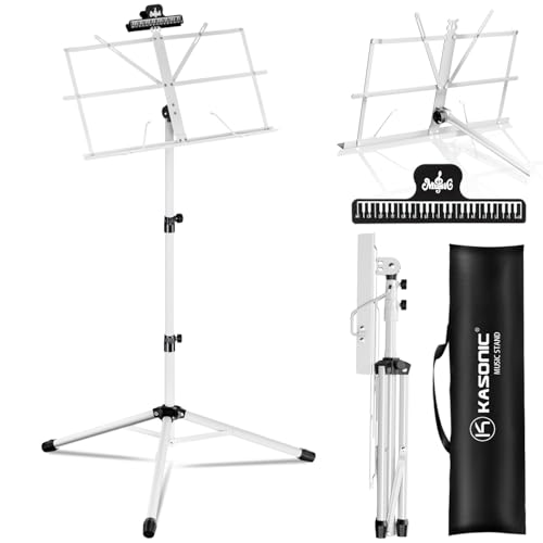 K KASONIC - Music Stand, 2 in 1 Dual-Use Folding Sheet Music Stand & Desktop Book Stand, Portable Lightweight with Music Sheet Clip Holder & Carrying Bag Suitable for Instrumental Performance (Black)