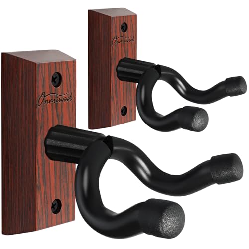 Guitar Wall Mount 2 Pack, Black Walnut Wood Guitar Hanger, U-Shaped Guitar Wall Hanger Mount, Guitar Holder Hook Stand Wall for Acoustic, Electric Guitar, Banjo, Bass, for Guitar Player Men Boy
