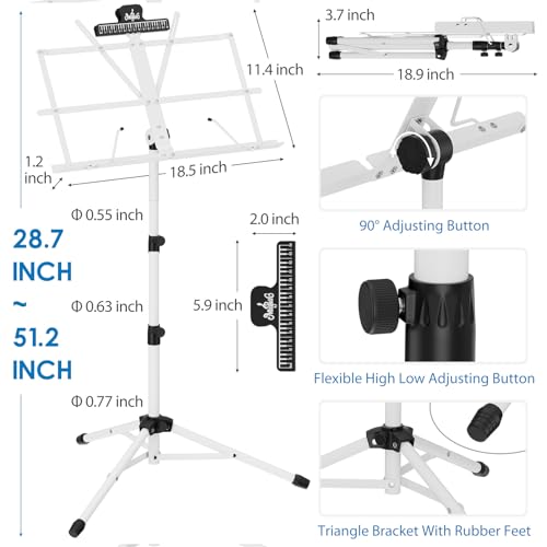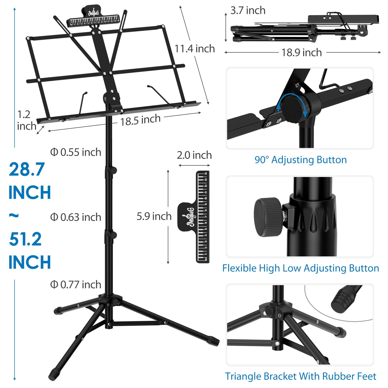 - EXTRA ACCESSORIES - A complete set of equipment come with the stand, which includes 1 x music sheet clip holder Great, 1 x carrying bag suitable for school, orchestras, choirs, church band and more!