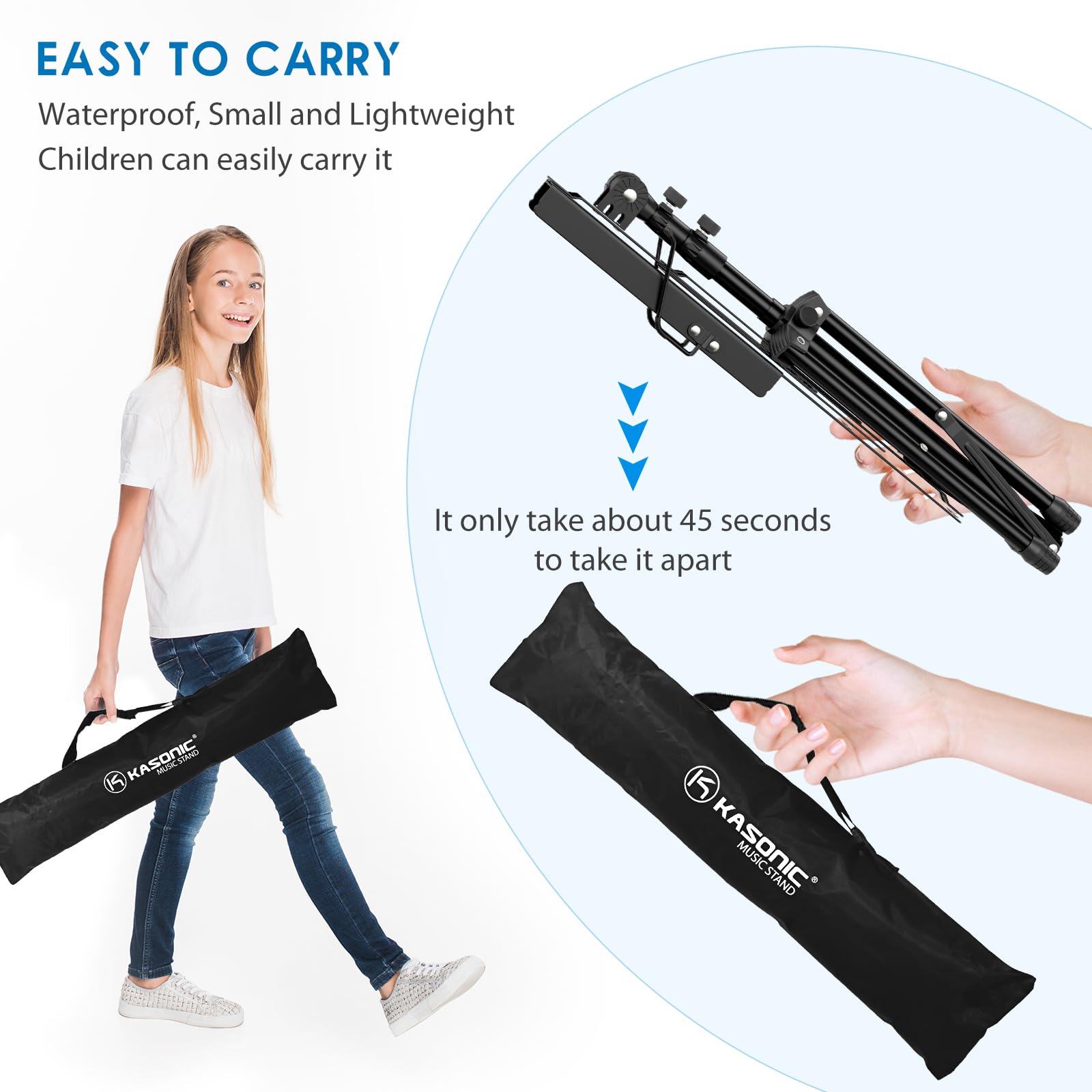 K KASONIC - Music Stand, 2 in 1 Dual-Use Folding Sheet Music Stand & Desktop Book Stand, Portable Lightweight with Music Sheet Clip Holder & Carrying Bag Suitable for Instrumental Performance (Black)