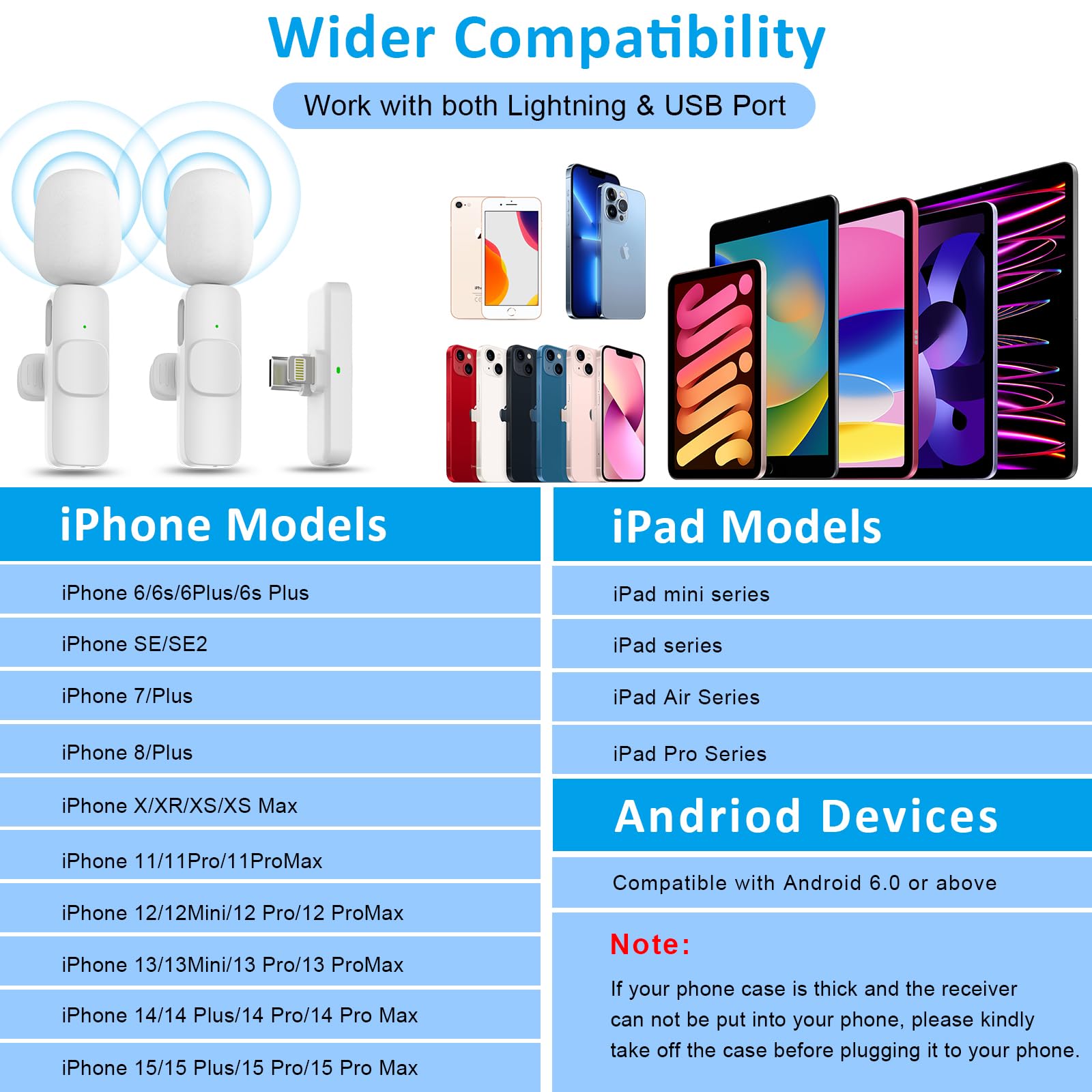 - Full Compatibility: The upgraded wireless clip on microphone is compatible with iOS smartphones, iPad, etc, the handheld mic is suitable for content creators to do interviewing, online conferencing or teaching, podcasting, vlogging, live streaming